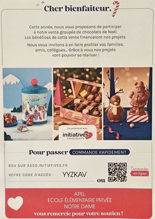 Cette année, l’Association des Parents d’Élèves organise sa grande vente de chocolats de Noël 🍫✨